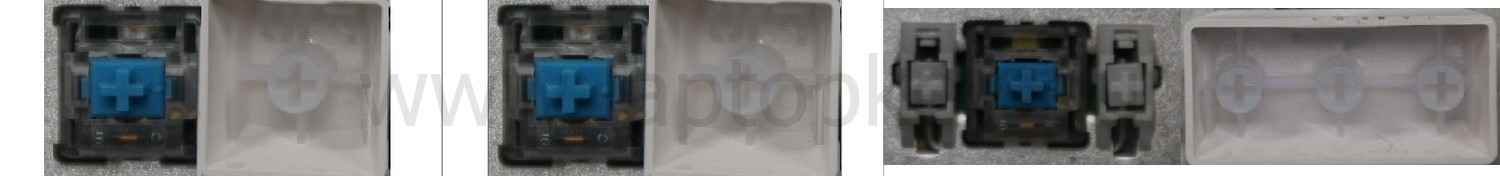 - Per selezionare il modello corretto, confronta lo spazio vuoto sulla tua tastiera con le immagini sottostanti, oppure rimuovi il tasto “A” – sotto di esso si trova sempre un fissaggio di misura media.