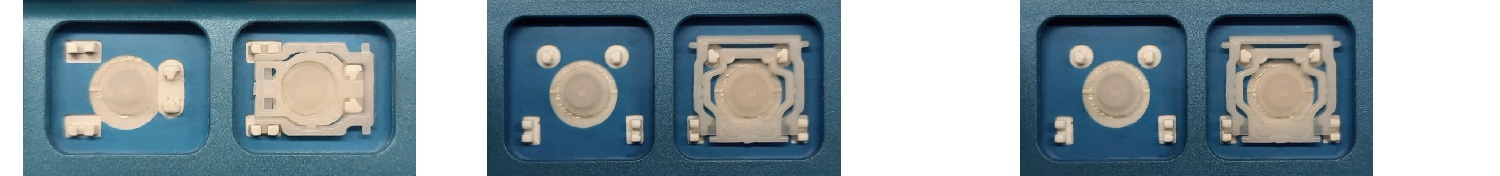 - Per selezionare il modello corretto, confronta lo spazio vuoto sulla tua tastiera con le immagini sottostanti, oppure rimuovi il tasto “A” – sotto di esso si trova sempre un fissaggio di misura media.