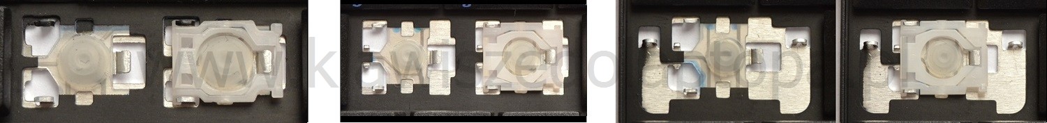 - Per selezionare il modello corretto, confronta lo spazio vuoto sulla tua tastiera con le immagini sottostanti, oppure rimuovi il tasto “A” – sotto di esso si trova sempre un fissaggio di misura media.